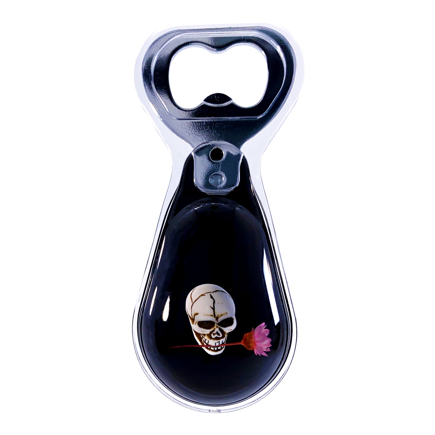 Our Bottle Opener Series transforms everyday function into art. Each opener is embedded with unique resin designs — skulls, flowers, or abstract motifs — sealed in a crystal-clear acrylic surface. The magnetic back allows it to attach easily to metal surfaces, combining utility with aesthetic appeal. A perfect piece for those who appreciate bold, modern design with a creative edge.
