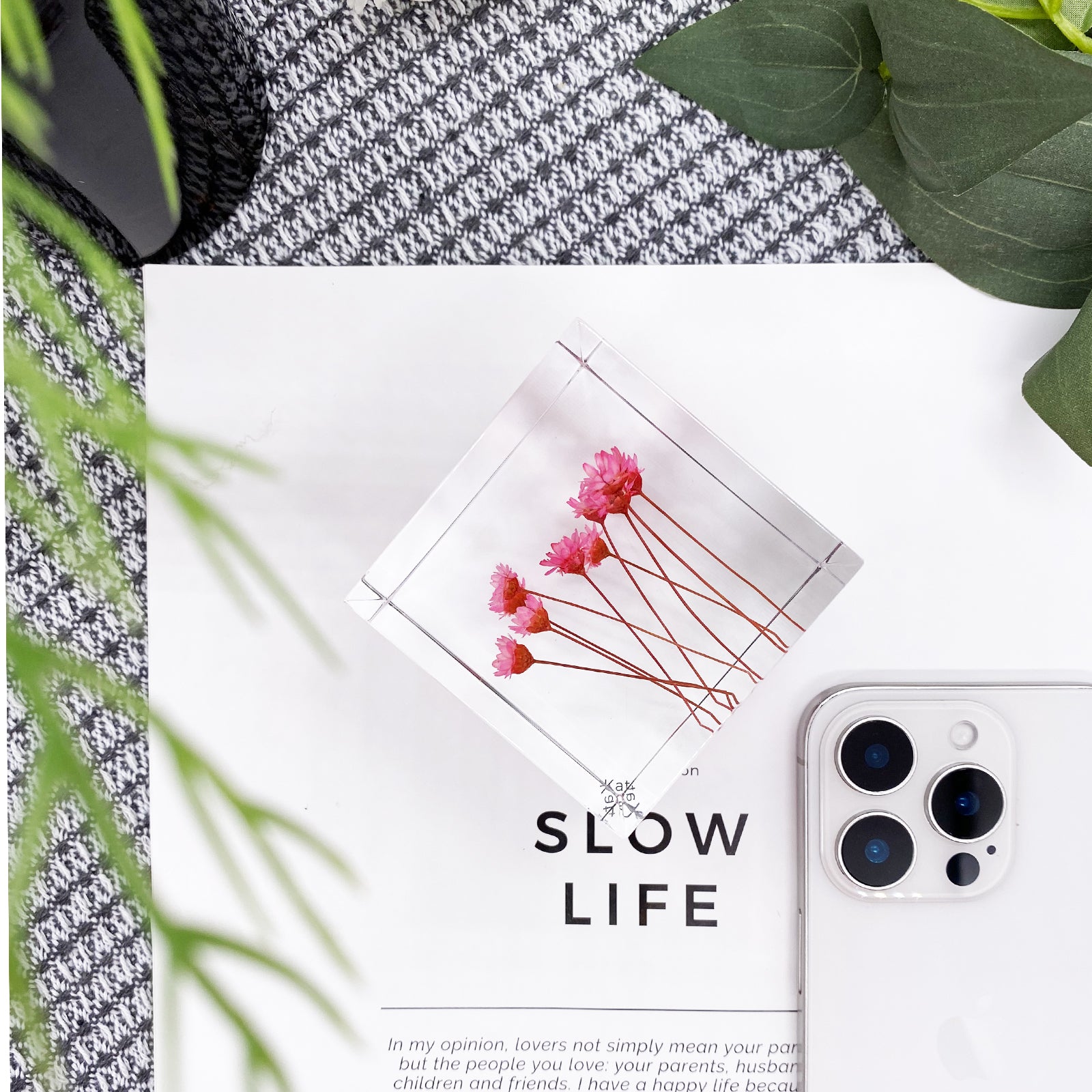 The 4cm Resin Cube Series captures nature’s charm in a smaller form — lightweight, portable, and delightfully detailed. Each cube holds a real flower design that varies in style and mood, from delicate blooms to vivid greens. Perfect as a pocket charm, mini décor, or thoughtful gift, these little cubes bring a touch of nature wherever you go.